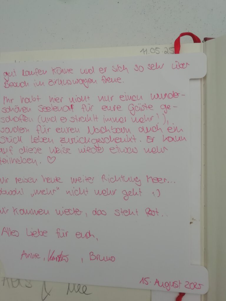 ich habe mich hier sofort so wohl gefühlt, wie noch nie an einem anderen Ort in meinem Leben. Wo fange ich an? Die vielen Fenster und die Deckenhöhe des Zirkuswagens gaben mir ein Gefühl der Weite und des großen Raumes. Die Natur war aus allen Fenstern zu betrachten und es gab gar keinen Anlass, die Rollos zu nutzen. Die Loggia gab mir auch bei kühlen Winden das Gefühl, mitten in der Natur zu sitzen. Das hochwertige, alte Holz, das ihr verbaut habt, strahlt Wärme und Geborgenheit aus, ohne wie Saunalook zu wirken. Trotz der vielen Worte gibt es keine Worte. Der Ort hat ganz und gar zu mir gepasst. Vielen Dank dafür und euch alles Gute, Stefania