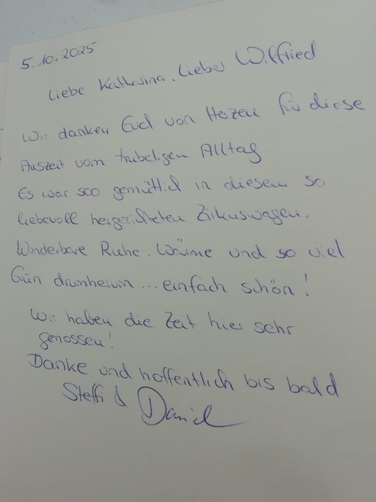 Wir hatten eine schöne Zeit in dem wunderschön umgebauten Zirkuswagen und konnten uns gut ausruhen. Vielen Dank!
